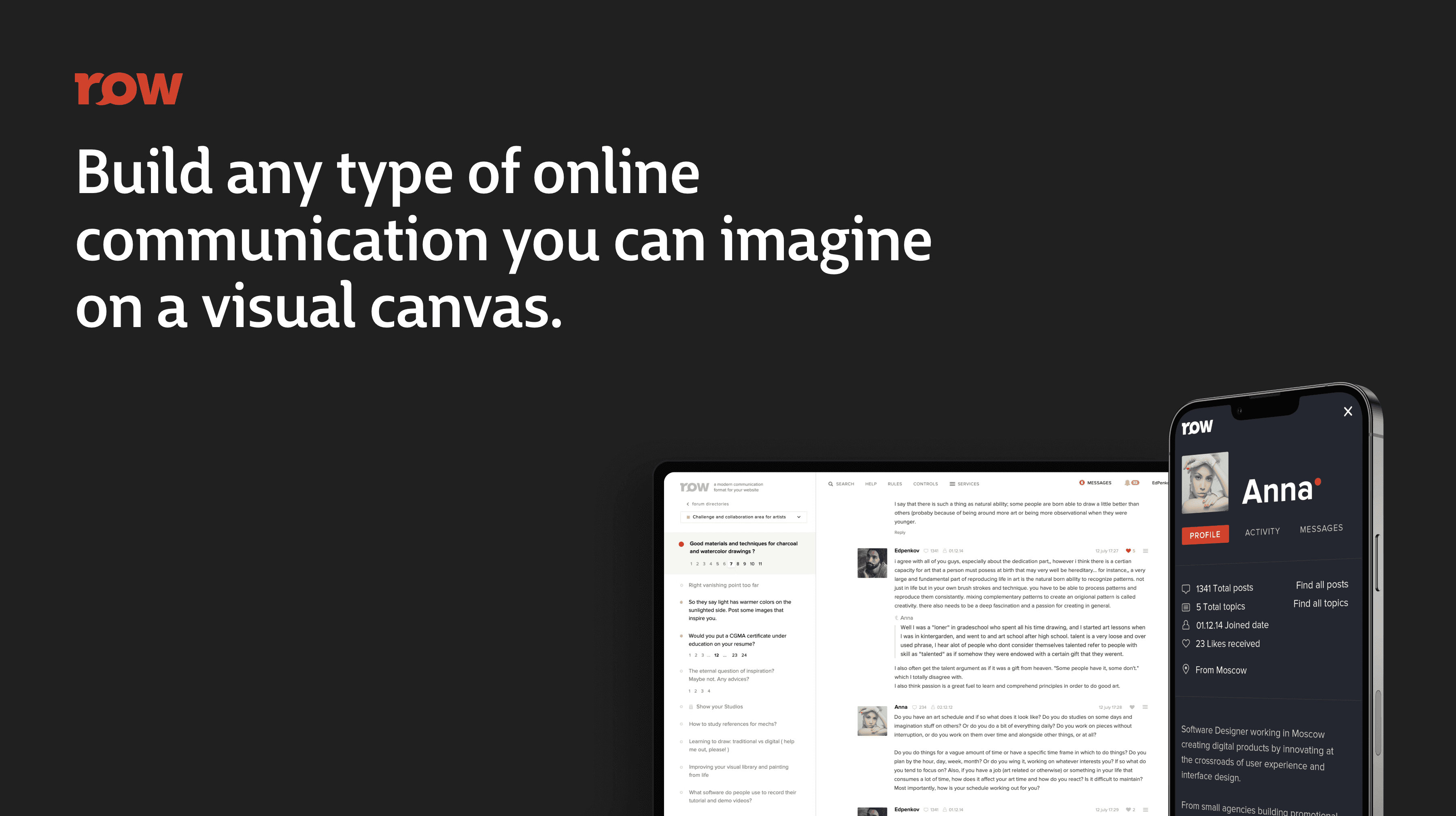 I started Row as a Webflow widget/script that allowed anyone to build comment sections and simple social features. After receiving positive feedback, the idea evolved into a broader tool for creating fully customizable social apps: chats, support widgets, interest-based communities, or entirely unique communiсaction spaces. The long-term vision included AI-powered content/users moderation and web3 infrastructure for extra security and ownership.