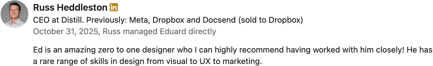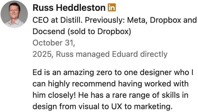 I worked directly with founders Russ Heddleston (3x founder, ex-VP at Dropbox and Meta) and Tim Su (YC alum, former Yahoo and Palantir) on an AI-powered platform for discovering people and companies, blending elements of Wikipedia and LinkedIn with AI-driven search and agent-based workflows, backed by a16z.