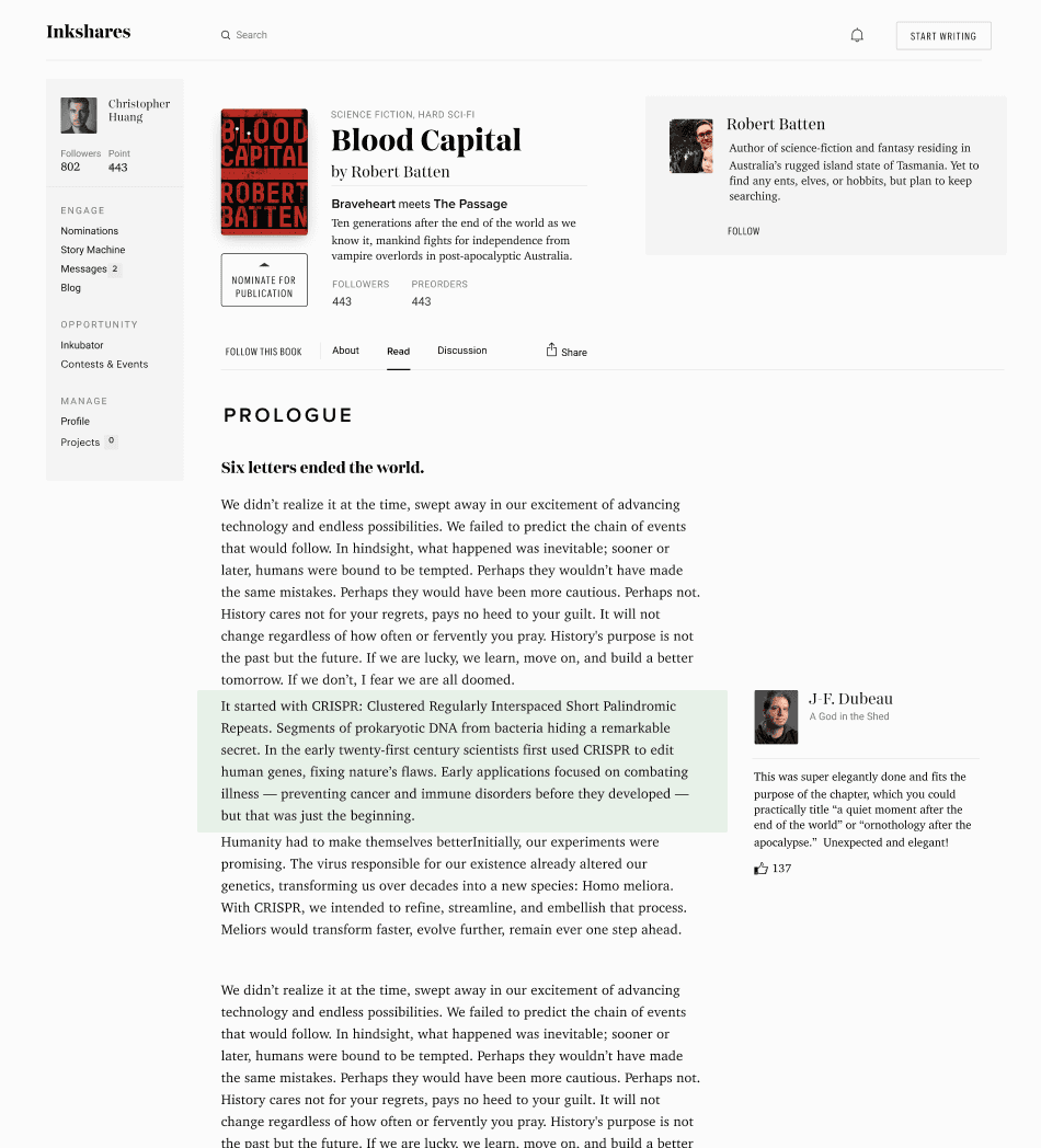 Collaborated with the company’s CEO, Adam, to rework the platform for editing and distributing authors’ books.