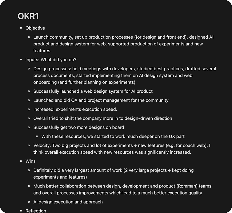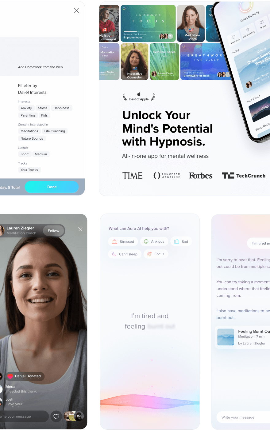 I built design production processes and quality standards that improved delivery speed, collaboration, and overall product quality, and led the launch of key product areas including AI-powered therapy, crowdfunding, and community.