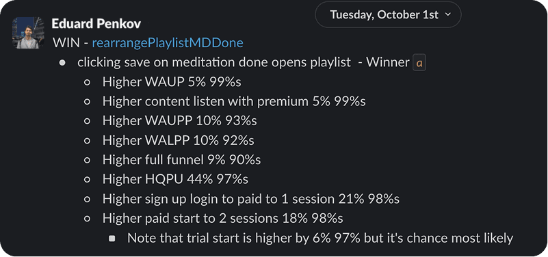These insights generated a steady stream of experiment ideas and helped us prioritize which problems to focus on next with confidence.