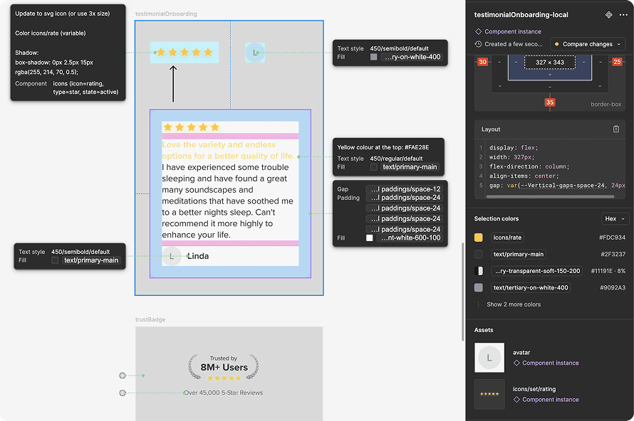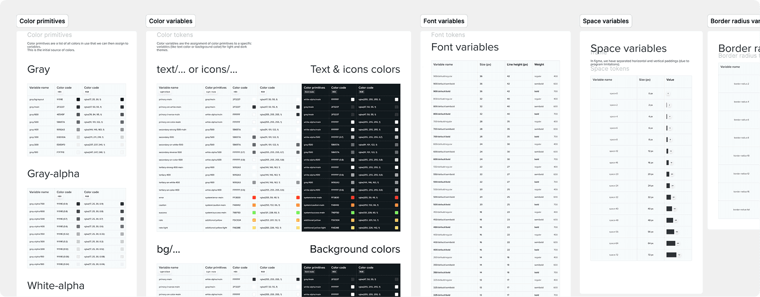 We built a design system fully synchronised with React components. I’m especially proud of its flexibility, for example the color system automatically adapts between and dark modes without requiring designer or engineer input.
