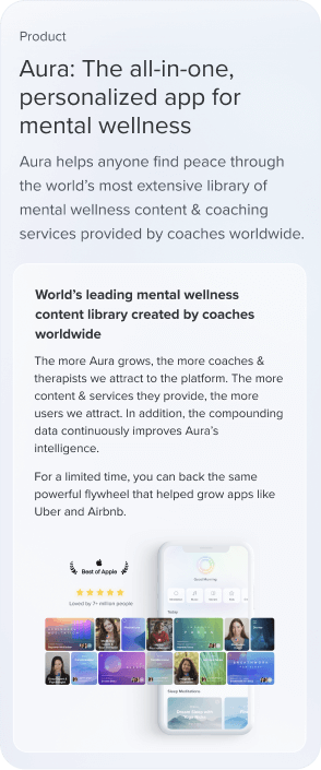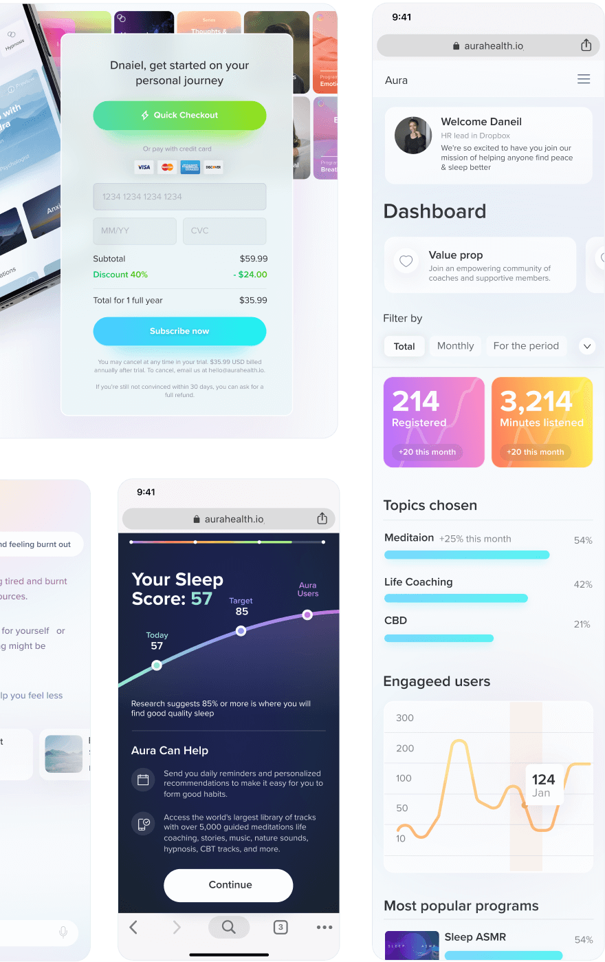 * Aura is a constantly evolving company, the screenshots and data in the examples may be outdated and differ from the actual application. I have deliberately chosen examples of work that I am particularly proud of, and I have removed parts of the design that may contain confidential information.