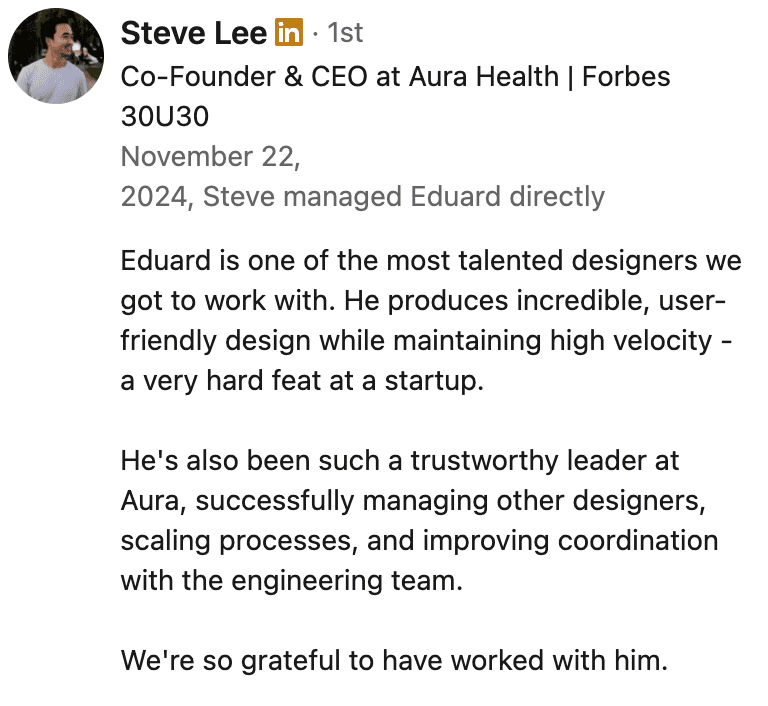 It had been on my wish-list for a while to work on something that makes people feel good and brings them joy. So, I've started a full-time role at Aura.