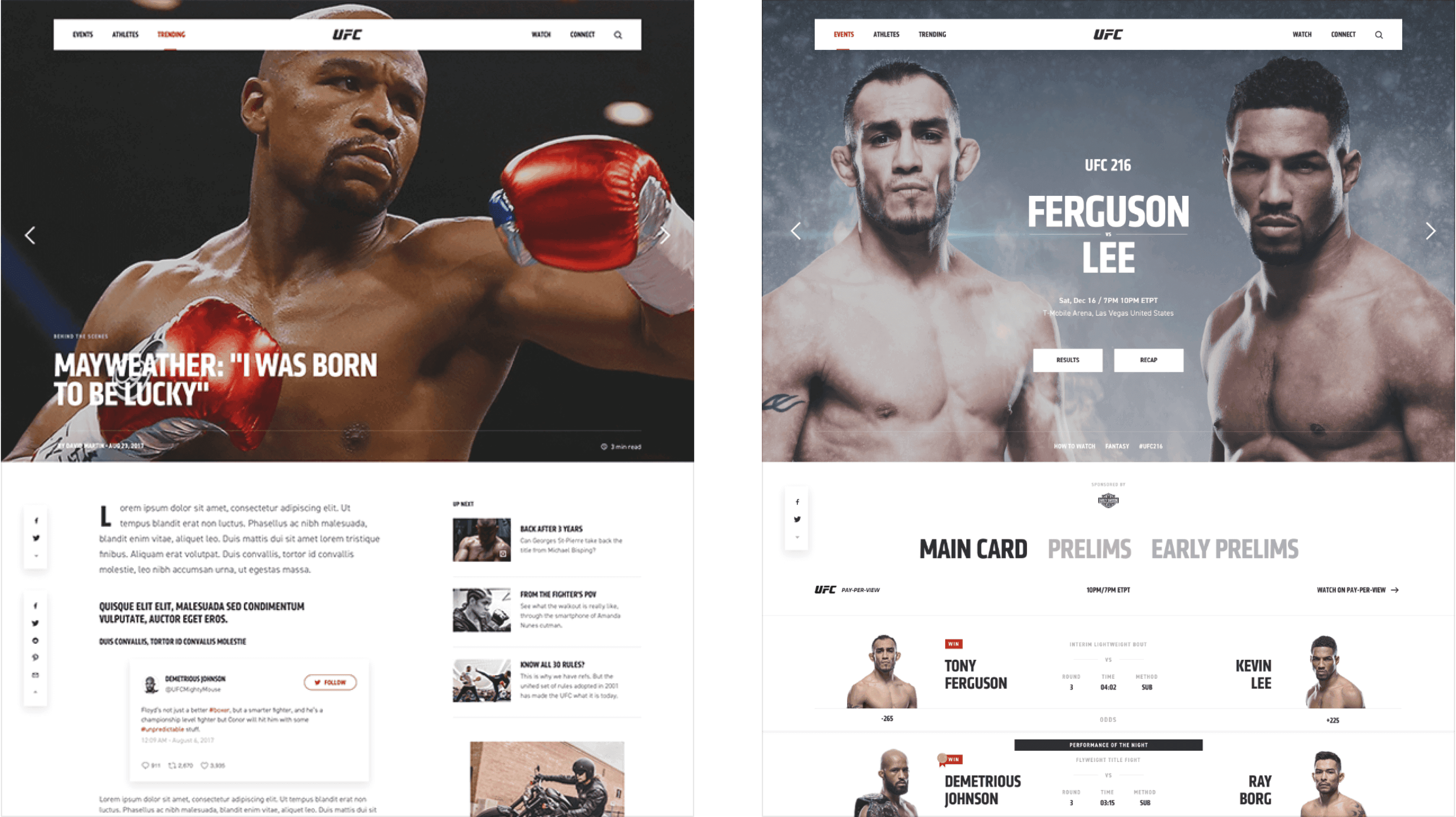 I was privileged to be part of the Fantasy team, working on the design of the UFC website, app, and TV experience.